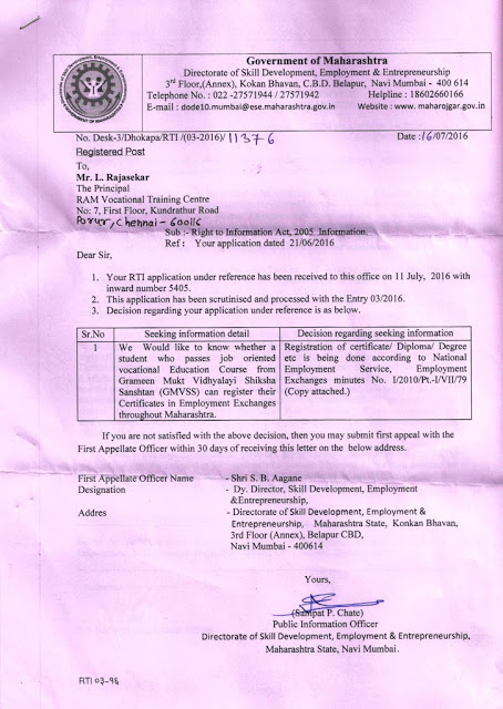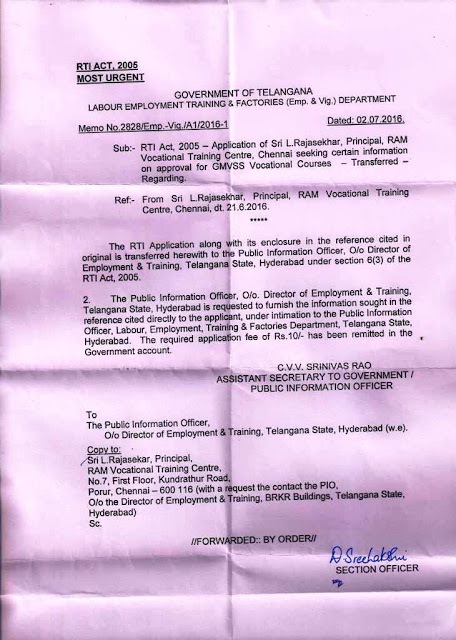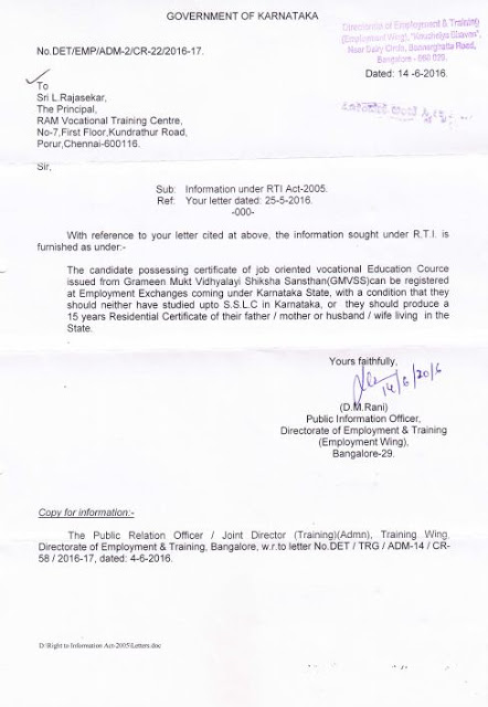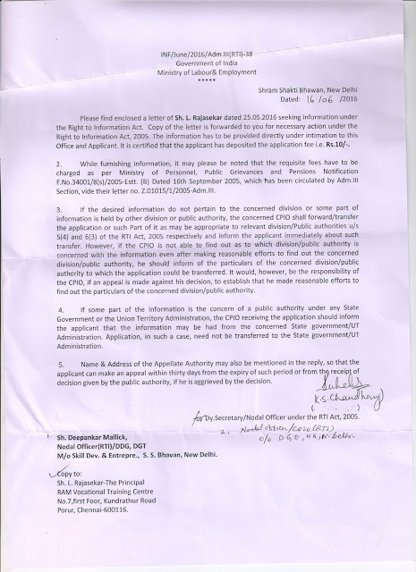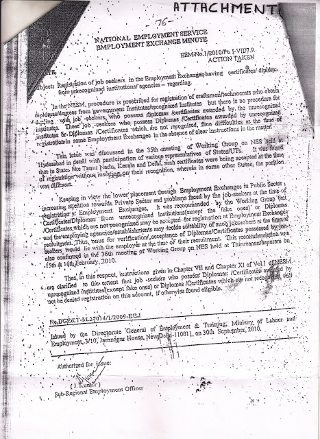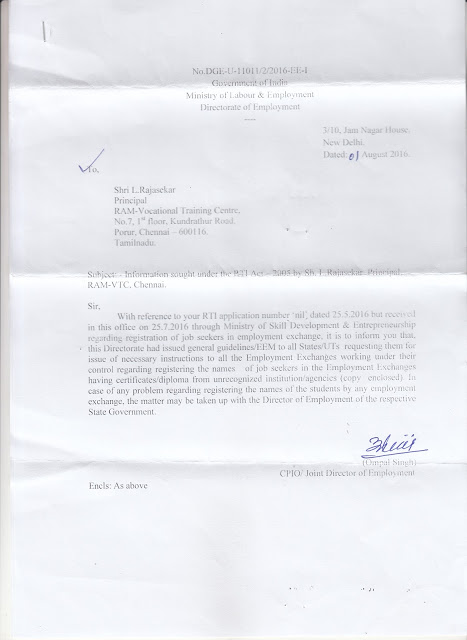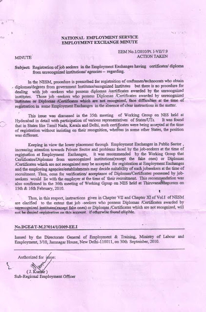MINISTRY OF LABOUR & EMPLOYMENT ( DGE&T ) GOVT. OF INDIA (VIDE LETTER NO. DGE-U-11011/2/2016-EE-1)