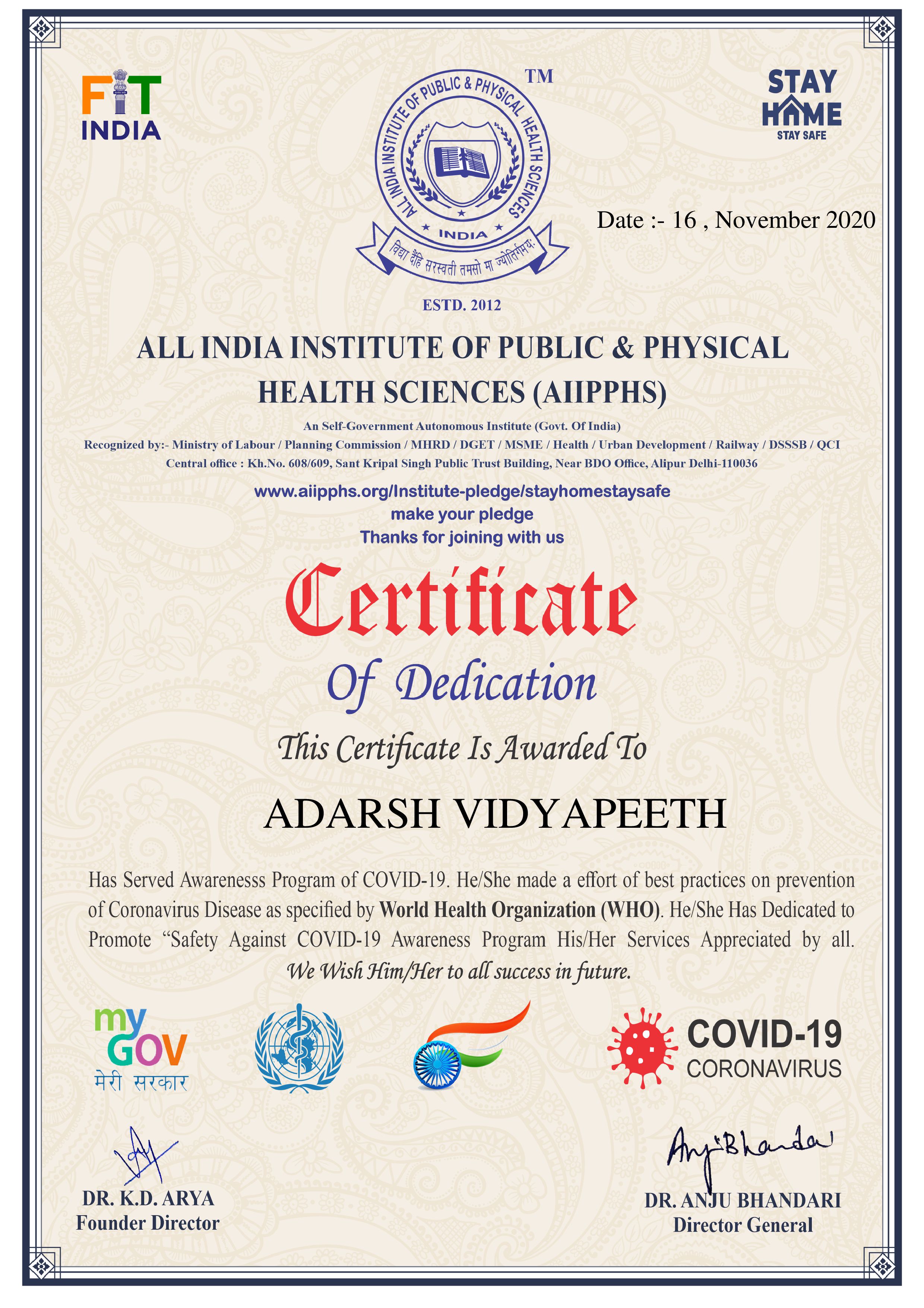 ADARSH VIDYAPEETH is an autonomous body, which is promoted by MLK INDIA SKILL DEVELOPMENT MISSION FOUNDATION was legally established under the guidance of jurists, eminent educationists, and social workers for the development of education in wide areas.